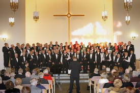syngur sitt efni. Eftir það er gestunum boðið á pallana og allir kórarnir syngja síðan saman nokkur stórvirki, sem samin hafa verið fyrir